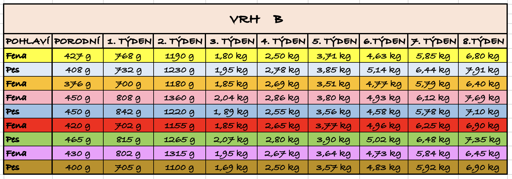 Miminka už blbnou na zahradě a poznávají svět. Pravidelně jezdí i budoucí majitelé, aby viděli štěňátka vyrůstat a navykli si na jejich režim. Stejně tak si štěňátka zvykají na jejich vůni a lépe si tak zvyknou v nové rodině.